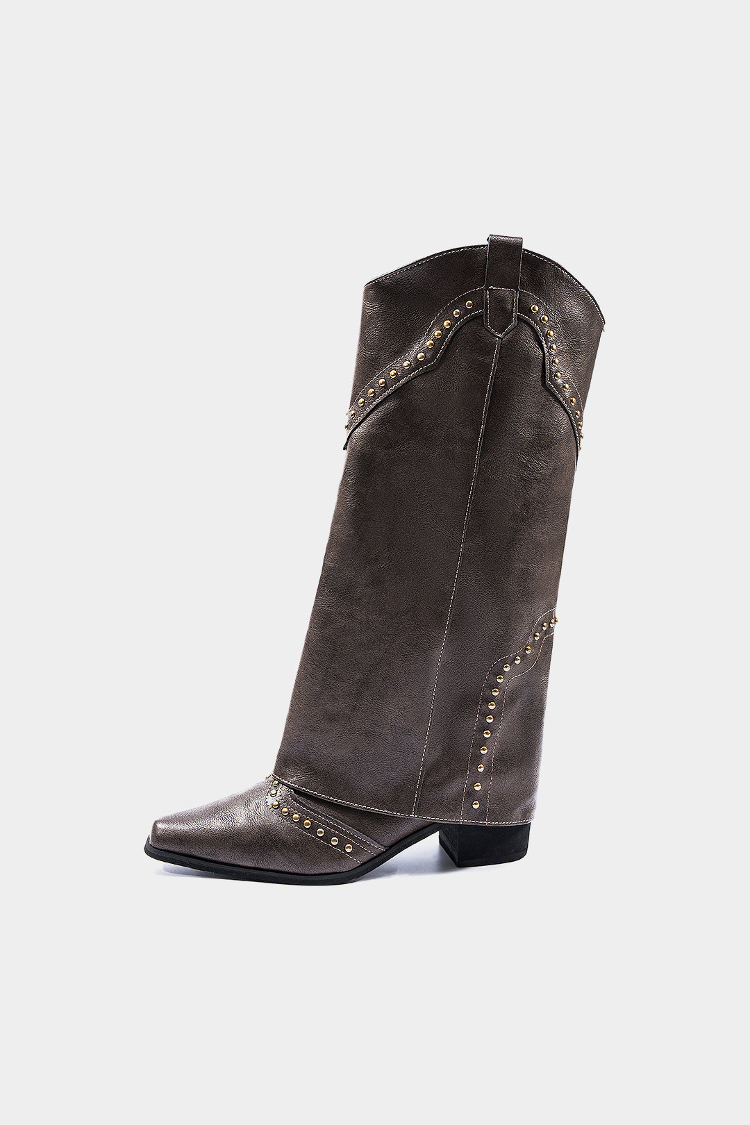 Tissu : similicuir texturé suédé, coupe de style western avec détails de rivets métalliques