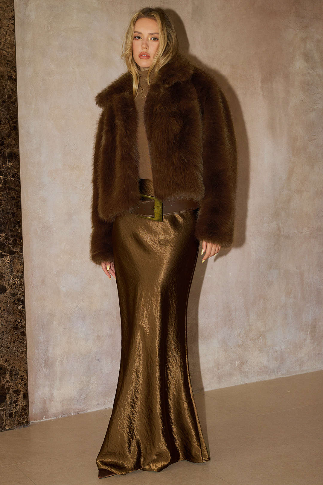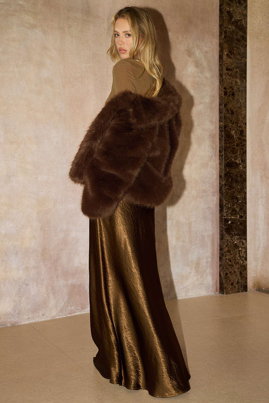 Cette veste en fausse fourrure est le choix le plus luxueux et audacieux de la femme Vandoria pour les saisons froides. Son ton marron chaud respire l'élégance sophistiquée, tandis que sa texture volumineuse sublime toutes les tenues. Que ce soit dans la rue le soir ou pour les grandes occasions, elle place le luxe au cœur de son style.