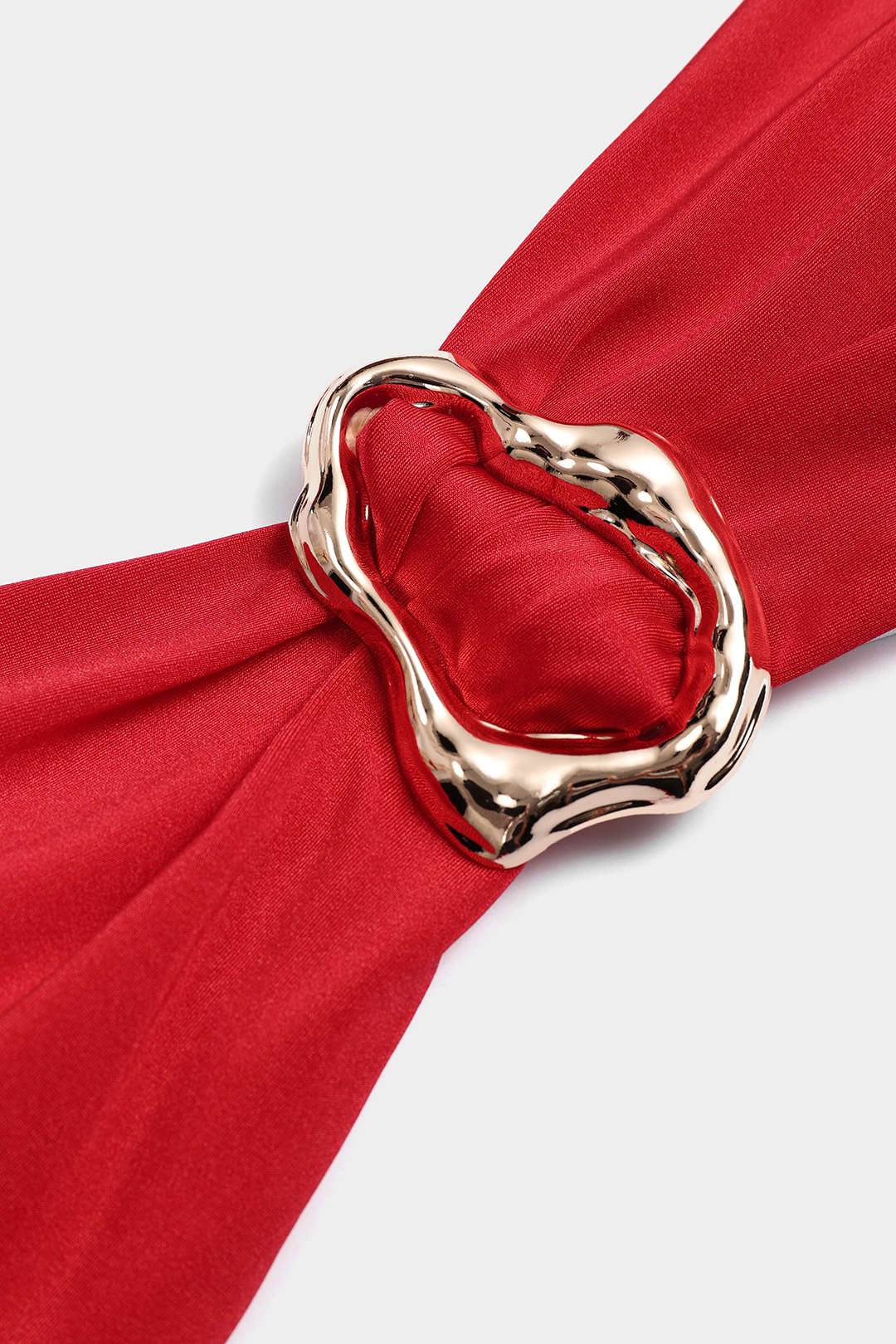 Crimson Shine est conçu pour briller sur la plage et séduire les femmes audacieuses. Avec sa teinte rouge vibrante et son anneau organique doré au centre, ce bikini bandeau éblouissant respire l'élégance sophistiquée. Son dos noué assure un ajustement personnalisé, tandis que son bas minimaliste lui confère une allure moderne. Pour celles qui souhaitent incarner l'énergie de l'amour, de la passion et de l'été.