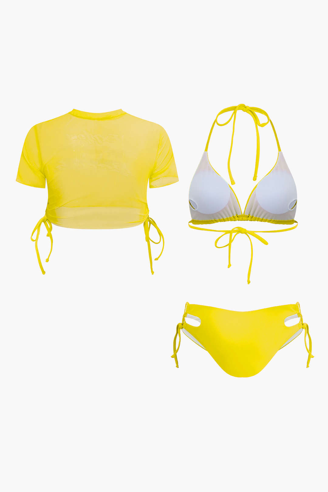 Fabriqués à partir d'un mélange de 90 % de polyester et de 10 % d'élasthanne, les pièces T-shirt et bikini offrent une utilisation confortable à la plage ou à la piscine grâce à leur tissu à séchage rapide, flexible et respirant.