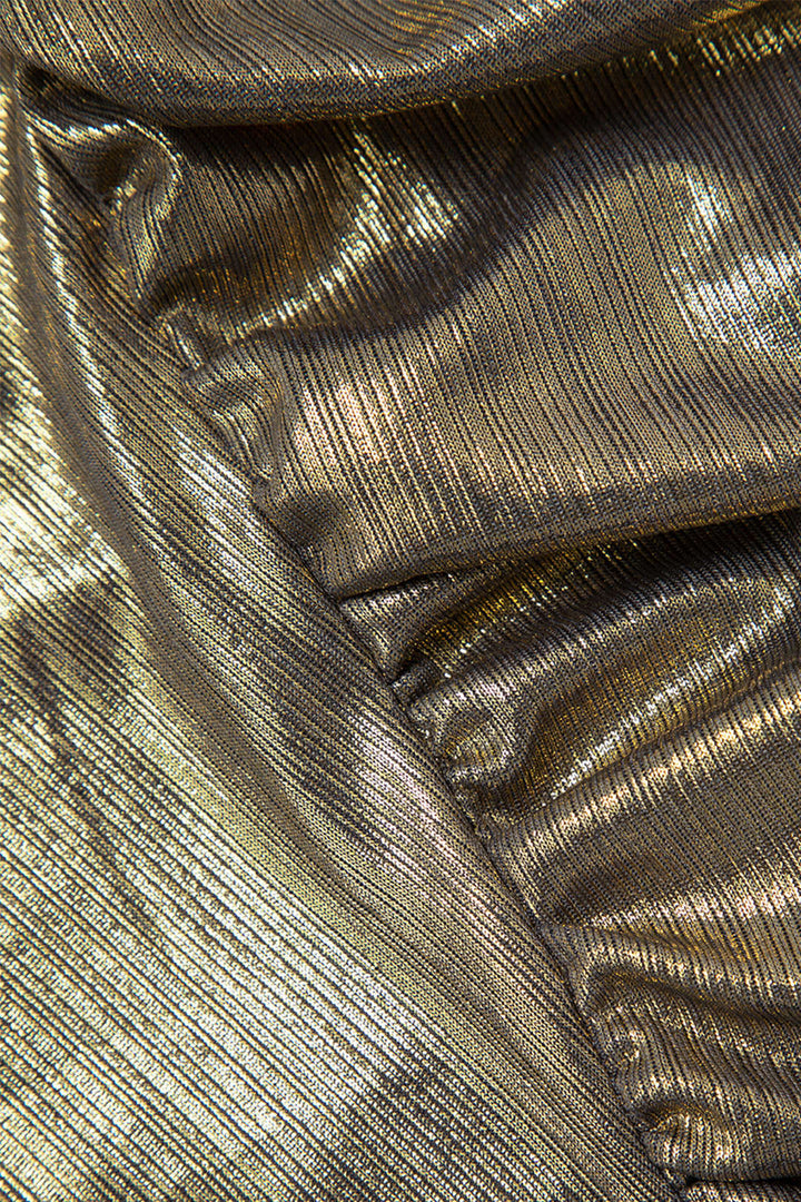 Golden Riot , avec sa texture satinée et son coupé bandana asymétrique, offre un look qui défie la nuit. Son décolleté dos nu clouté allie élégance et esprit rebelle. Conçu pour les femmes audacieuses, celles qui souhaitent transformer chaque touche de lumière en style.
