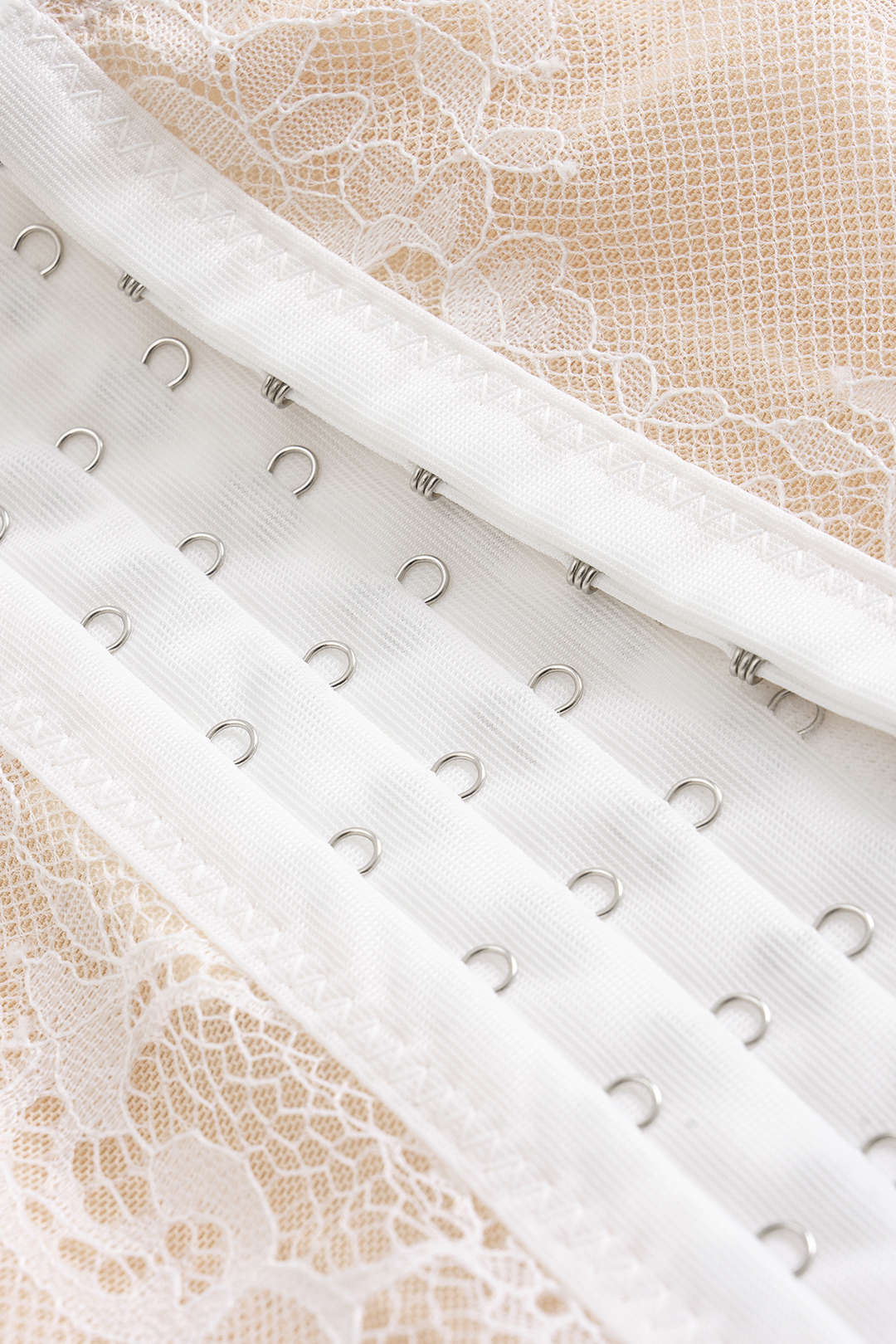Dentelle semi-transparente, légèrement doublée à l'intérieur et dotée d'armatures. Non extensible.