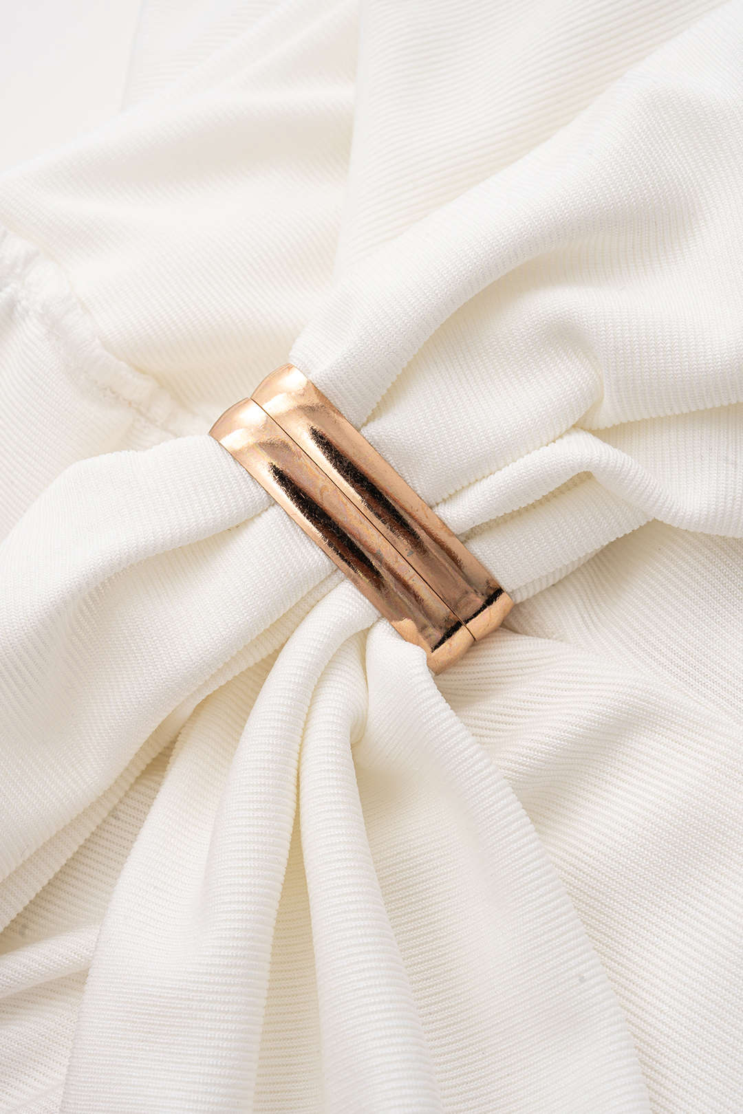 Confectionné en viscose souple et légèrement brillante, il est légèrement doublé au niveau de la poitrine.