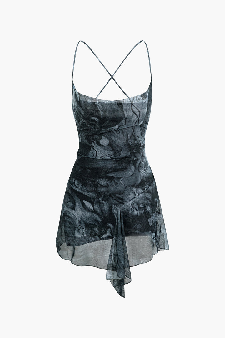 Midnight Mirage allie magie et élégance nocturne. Ses fines bretelles, ses dos croisés et sa structure légèrement transparente créent une silhouette mystérieuse et audacieuse. Sa coupe ondulée et ses motifs floraux créent une sensation de danse gracieuse à chaque pas. Prête à être la star de la soirée ?