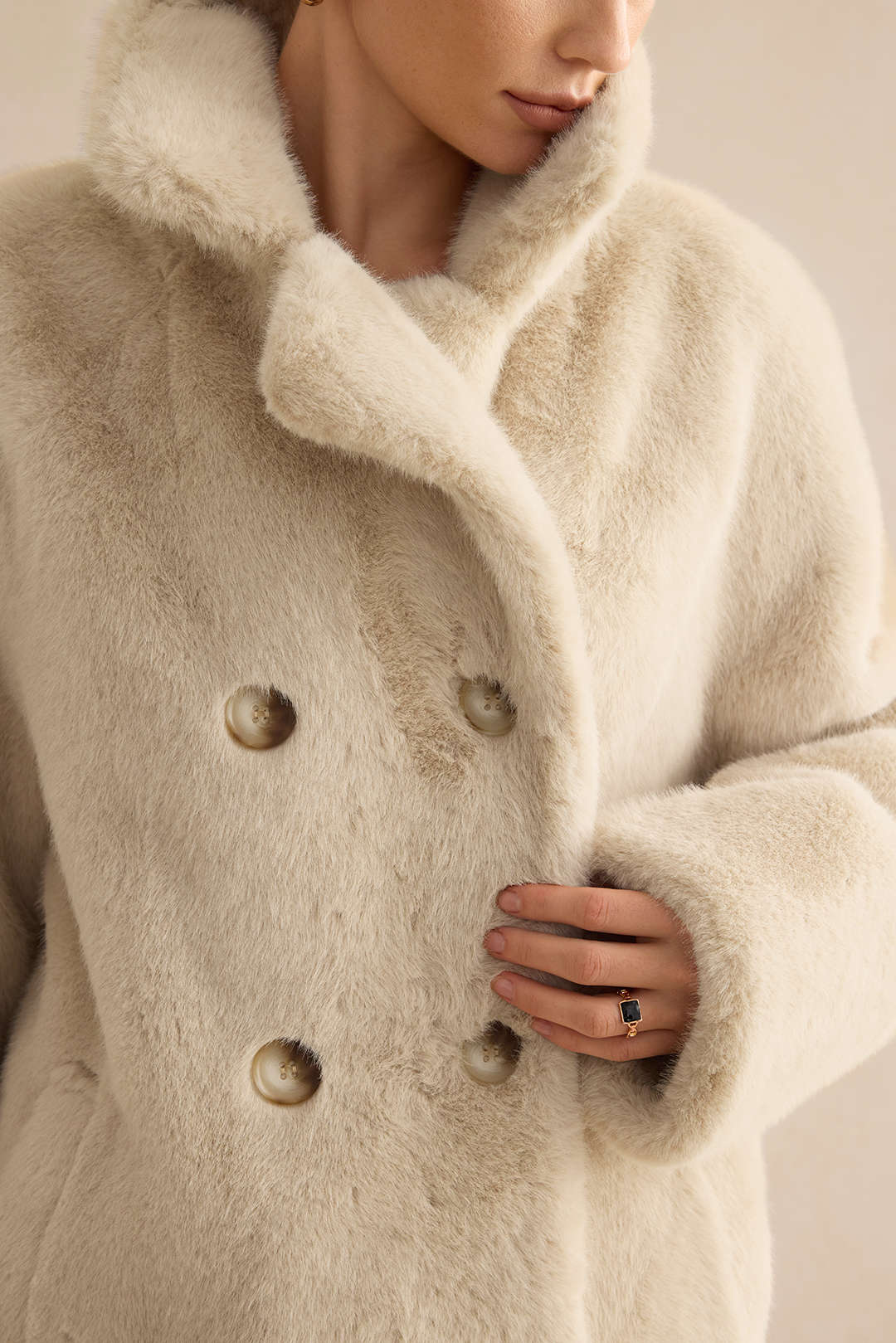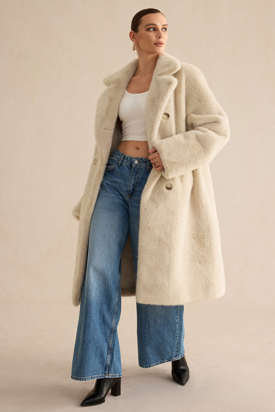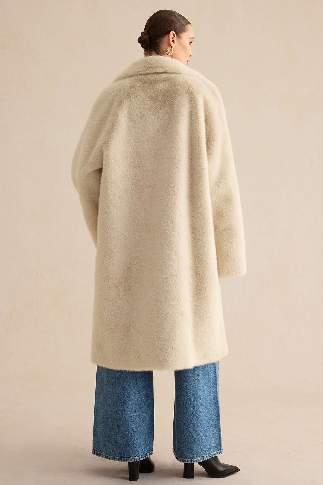 Texture de la fausse fourrure : La fausse fourrure douce et dense apporte une touche luxueuse et chaleureuse au manteau. Sa texture épouse le corps sans nuire à son élégance.