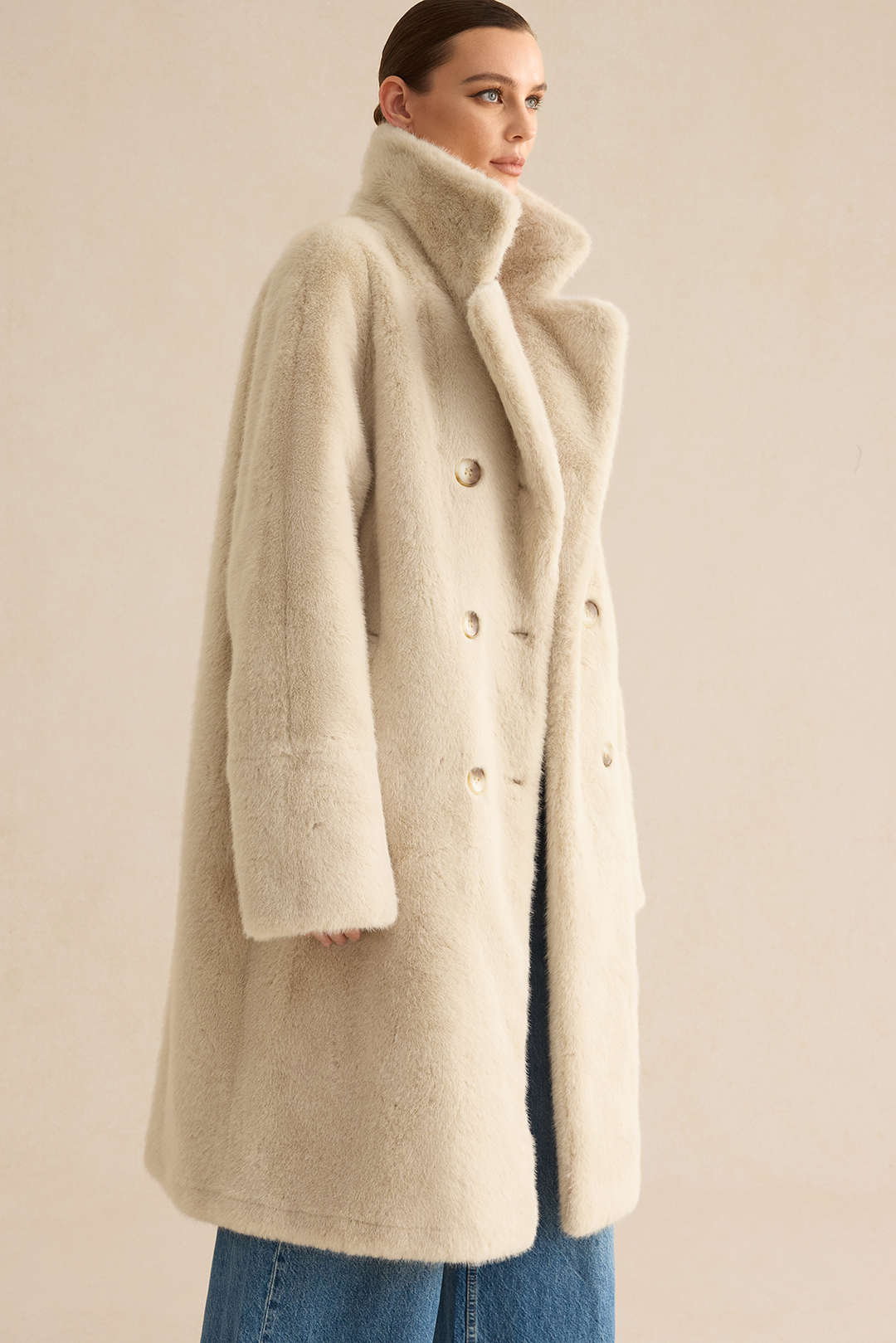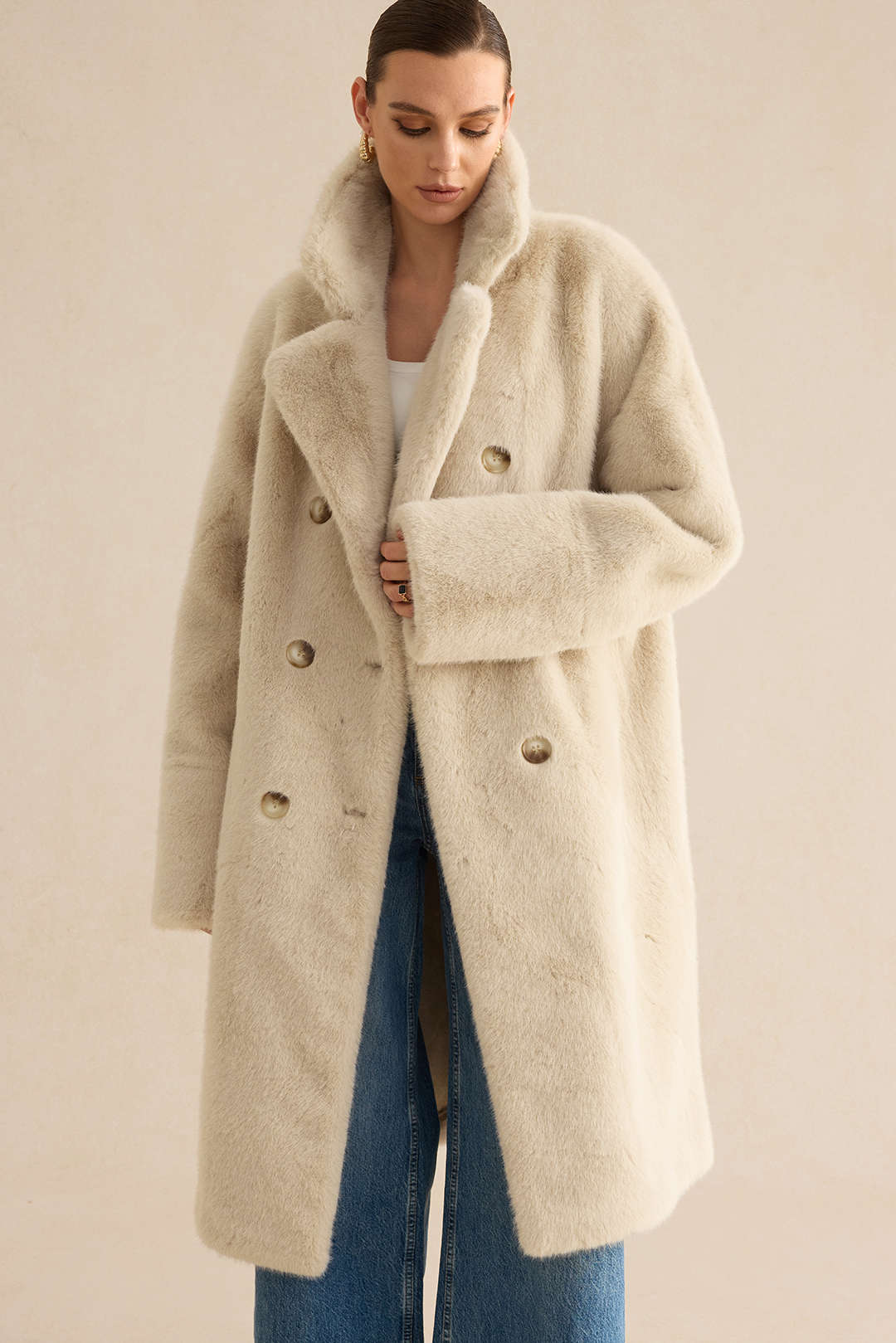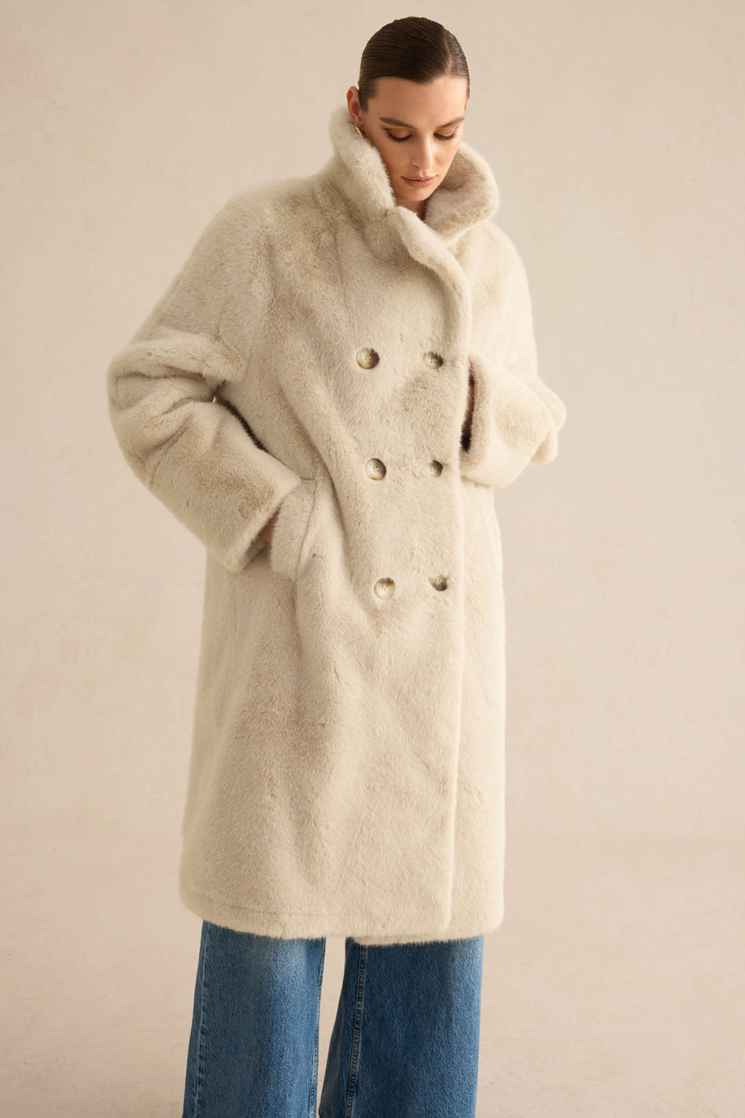 Texture de la fausse fourrure : La fausse fourrure douce et dense apporte une touche luxueuse et chaleureuse au manteau. Sa texture épouse le corps sans nuire à son élégance.